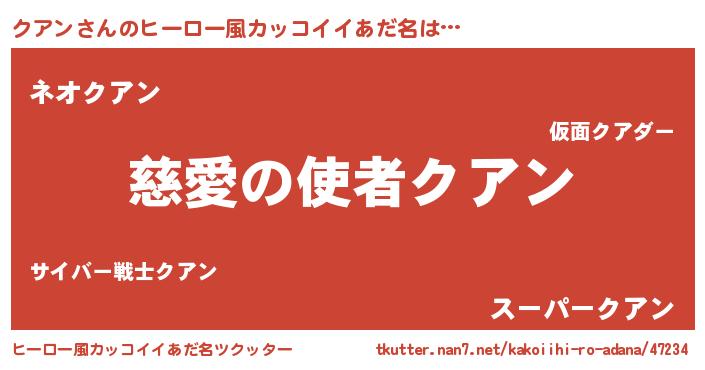 | ヘコむあだ名 | 『クアン(苦笑)』『クアもー』 |