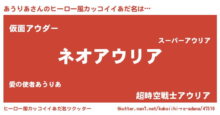 | 意味不明あだ名 | 『永久保存あうりあ』『自称あうりあ』 |