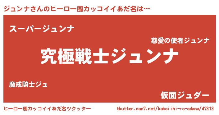 | 男性向けラノベタイトル風あだ名 | 『Re:ジュンナから始める異世界生活』 |