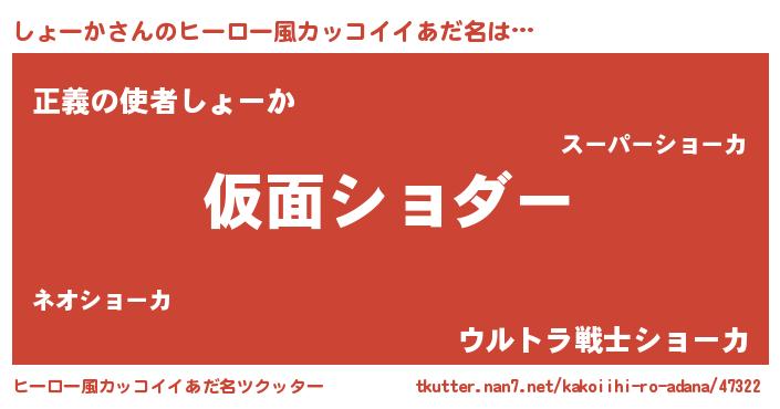 | 男性向けラノベタイトル風あだ名 | 『この素晴らしい世界にしょーかを!』 |