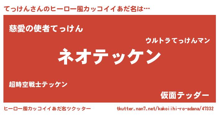 | ヘコむあだ名 | 『てっけん(苦笑)』『酢こんぶ』 |