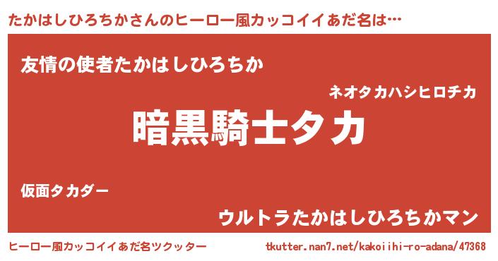 | 男性向けラノベタイトル風あだ名 | 『ダンジョンにたかはしひろちかを求めるのは間違っているだろうか』 |