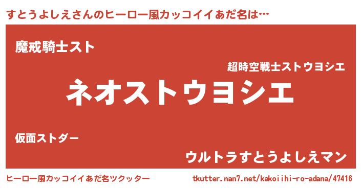 | 意味不明あだ名 | 『永久保存すとうよしえ』 |