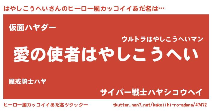 | 男性向けラノベタイトル風あだ名 | 『転生したらはやしこうへいだった件』 |