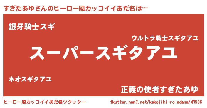 | 女子向けラノベタイトル風あだ名 | 『すぎたあゆの玉の輿計画!』 |