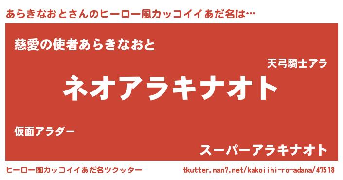 | 胡散臭い通販商品みたいなあだ名 | 『来世でも幸せになれる健康食品…その名も「あらきなおと」』 |