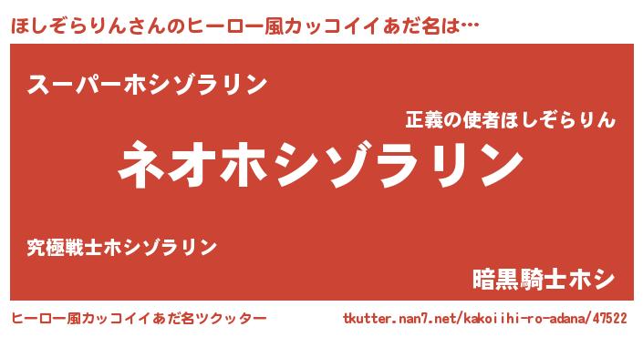 | 胡散臭い通販商品みたいなあだ名 | 『来世でも幸せになれる健康食品…その名も「ほしぞらりん」』 |