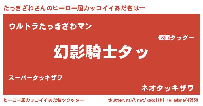 | 意味不明あだ名 | 『とにかく怪しいたっきざわ』 |