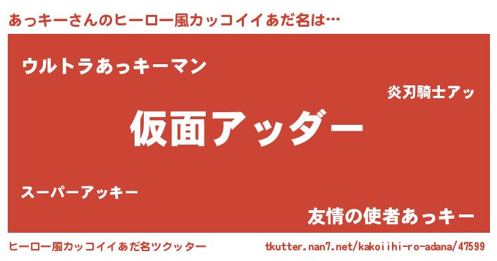 | 意味不明あだ名 | 『住所不定無職あっキー(98歳)』 |