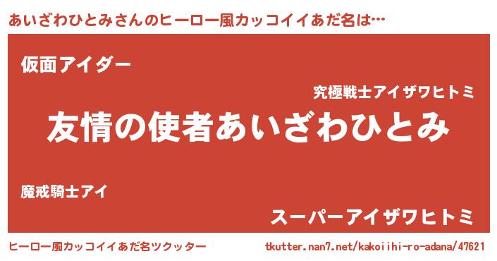 | 男性向けラノベタイトル風あだ名 | 『おまえをオタクにしてやるから、俺をあいざわひとみにしてくれ! 』 |