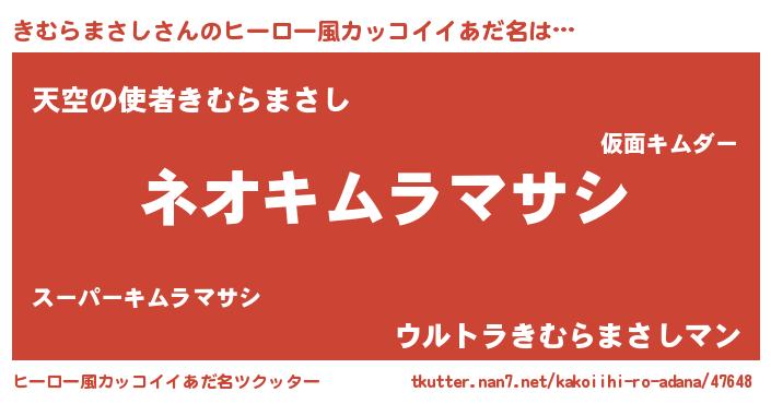 | 男性向けラノベタイトル風あだ名 | 『キムラマサシスレイヤー』 |