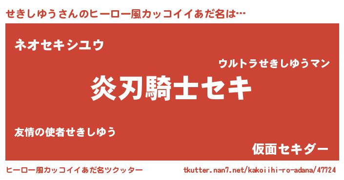 | 男性向けラノベタイトル風あだ名 | 『せきしゆう~年齢イコール彼女いない歴の魔法使い~』 |