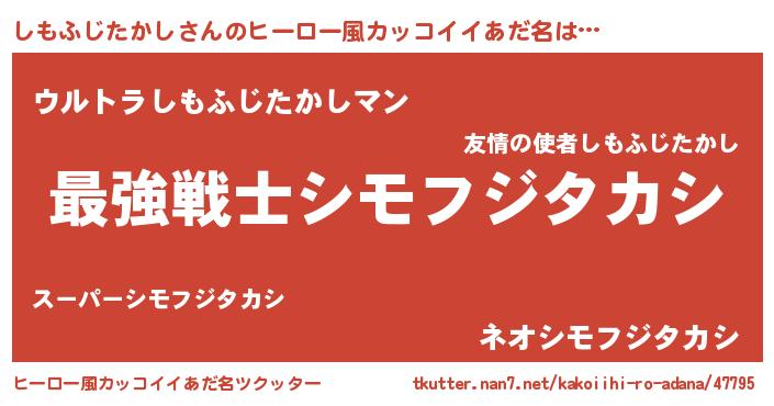 | 男性向けラノベタイトル風あだ名 | 『しもふじたかしに滅ぼされるだけの簡単なお仕事です』 |
