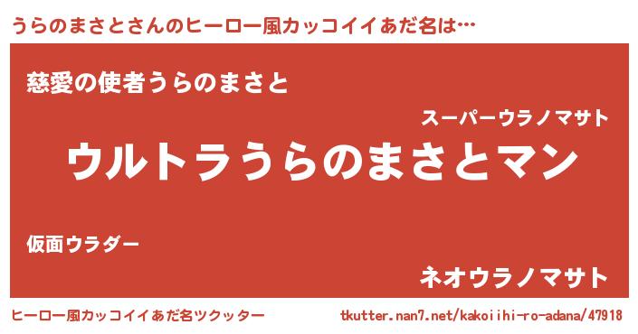| 女子向けラノベタイトル風あだ名 | 『うらのまさとの玉の輿計画!』 |