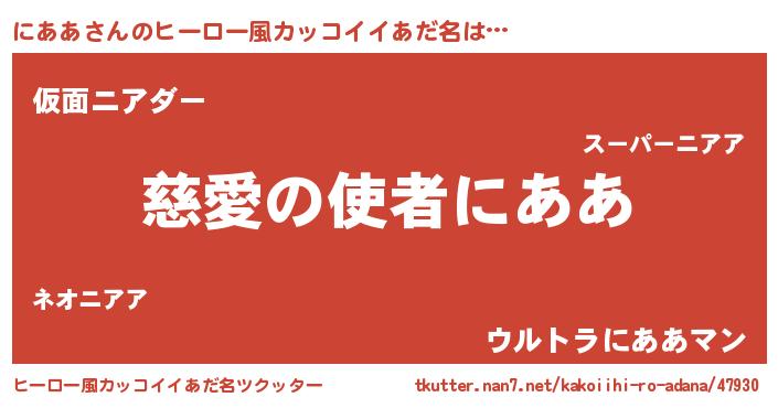 | 女子向けラノベタイトル風あだ名 | 『にああ恋絵巻』『にああの雑貨屋さん』 |