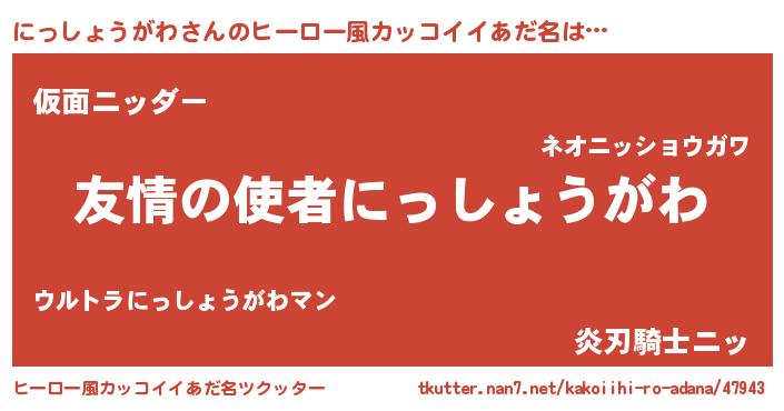 | 男性向けラノベタイトル風あだ名 | 『おまえをオタクにしてやるから、俺をにっしょうがわにしてくれ! 』 |