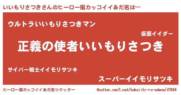 | 胡散臭い通販商品みたいなあだ名 | 『100人中100人が認めたイリジウム磁石…その名も「いいもりさつき」』 |