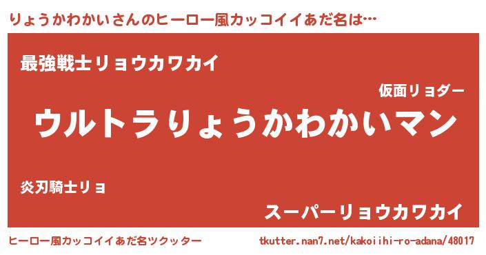 | ファンタジー風あだ名 | 『エターナルリョウカワカイー』 |
