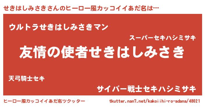 | 女子向けラノベタイトル風あだ名 | 『せきはしみさき夫妻のなれそめ』 |