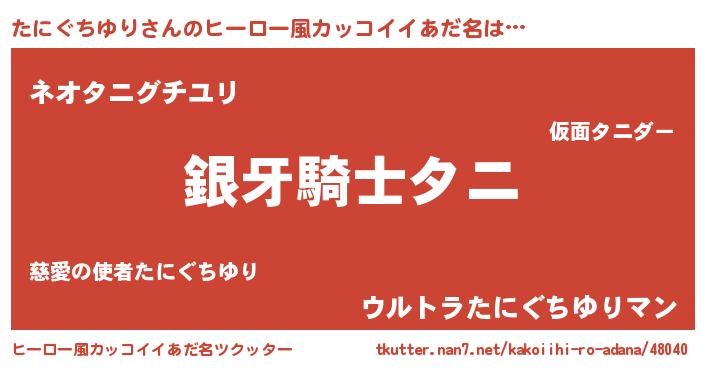| ポケモン風あだ名 | 『ヒタニグチユリ』『タニキング』 |