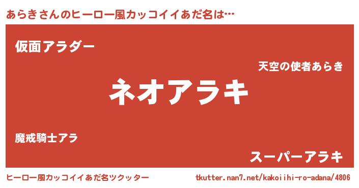 | 男性向けラノベタイトル風あだ名 | 『転生したらあらきだった件』 |