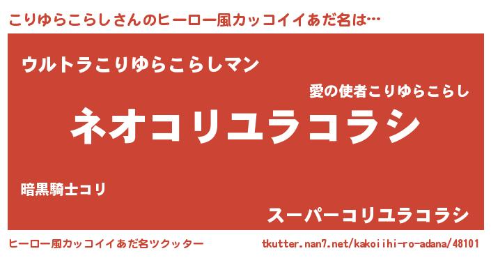 | 男性向けラノベタイトル風あだ名 | 『こりゆらこらしに滅ぼされるだけの簡単なお仕事です』 |