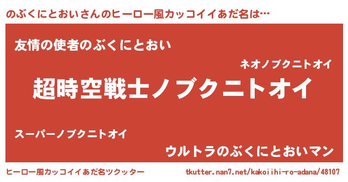 | 男性向けラノベタイトル風あだ名 | 『ノブクニトオイスレイヤー』 |