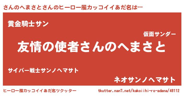 さんのへまさとさんのヒーロー風カッコイイあだ名をツクッター!
