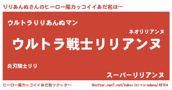 | 男性向けラノベタイトル風あだ名 | 『転生したらりりあんぬだった件』 |