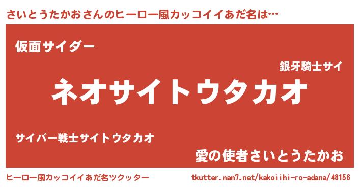| ヘコむあだ名 | 『さいとうたかお(小並感)』『さいお』 |