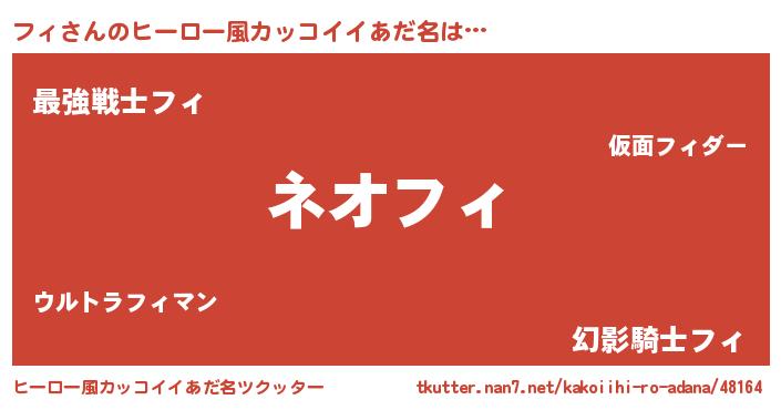 | 恥ずかしいあだ名 | 『フィちん』『フィデラックス』 |