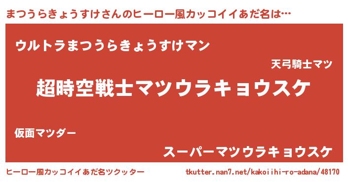 | 女子向けラノベタイトル風あだ名 | 『まつうらきょうすけなんてお断りですっ。』 |