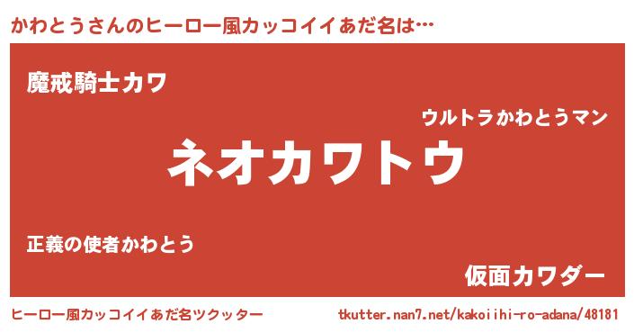 | 男性向けラノベタイトル風あだ名 | 『かわとうという概念が存在しない退屈な世界 』 |