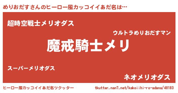 | 胡散臭い通販商品みたいなあだ名 | 『信頼と実績のサプリメント…その名も「めりおだす」』 |