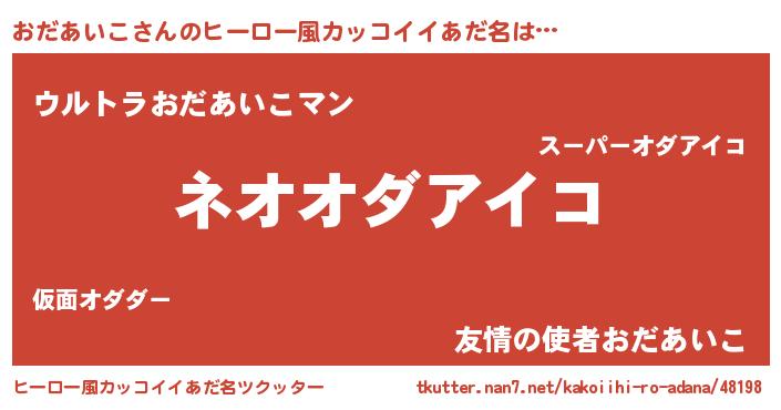 | 胡散臭い通販商品みたいなあだ名 | 『来世でも幸せになれる健康食品…その名も「おだあいこ」』 |