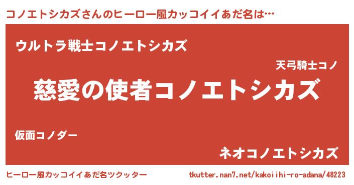 コノエトシカズさんのヒーロー風カッコイイあだ名をツクッター!
