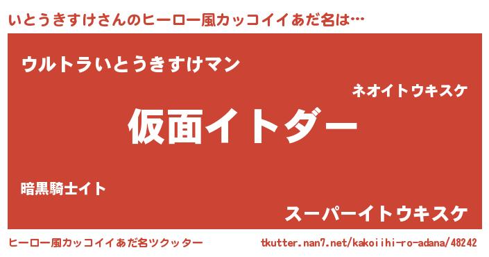 | 男性向けラノベタイトル風あだ名 | 『転生したらいとうきすけだった件』 |