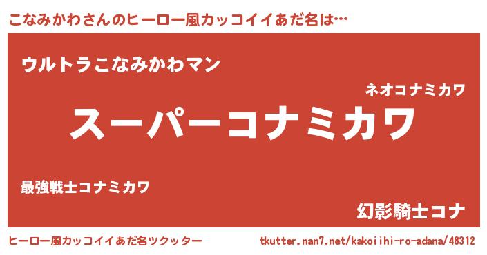 | 女子向けラノベタイトル風あだ名 | 『こなみかわ姫と円卓の騎士』 |