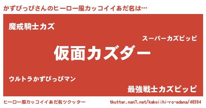 | 男性向けラノベタイトル風あだ名 | 『魔弾の王とかずぴっぴ』 |