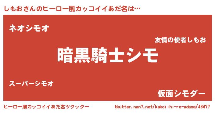 | 胡散臭い通販商品みたいなあだ名 | 『信頼と実績のサプリメント…その名も「しもお」』 |