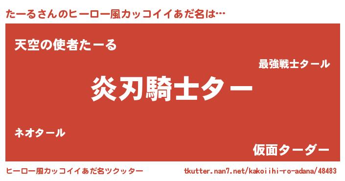 | 女子向けラノベタイトル風あだ名 | 『たーる様がみてる』『死神たーるの再婚』 |