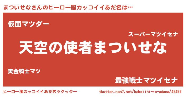 | 男性向けラノベタイトル風あだ名 | 『ノーゲーム・ノーマツイセナ』 |