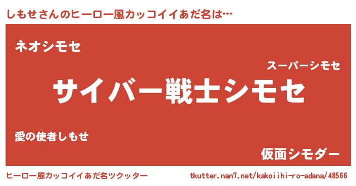| 男性向けラノベタイトル風あだ名 | 『Re:しもせから始める異世界生活』 |