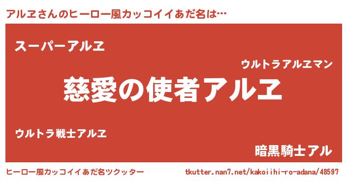 | 女子向けラノベタイトル風あだ名 | 『アルヱ恋絵巻』『アルヱは平凡を望む』 |