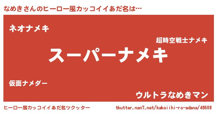 | 男性向けラノベタイトル風あだ名 | 『なめきの憂鬱』『魔法科高校のなめき』 |