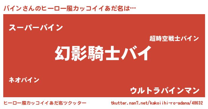 | 男性向けラノベタイトル風あだ名 | 『バインの嫁は女の子じゃないと思った?』 |