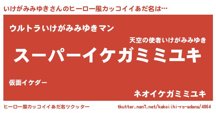 | 恥ずかしいあだ名 | 『プリティーいけがみみゆき』『いけちん』 |