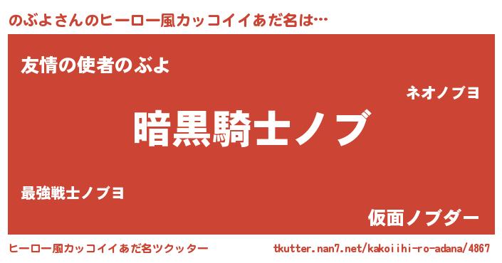 | 胡散臭い通販商品みたいなあだ名 | 『信頼と実績のペンダント…その名も「のぶよ」』 |