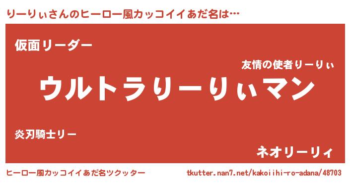 | 意味不明あだ名 | 『りーりぃフォーエバー』 |