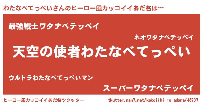 | 男性向けラノベタイトル風あだ名 | 『ノーゲーム・ノーワタナベテッペイ』 |